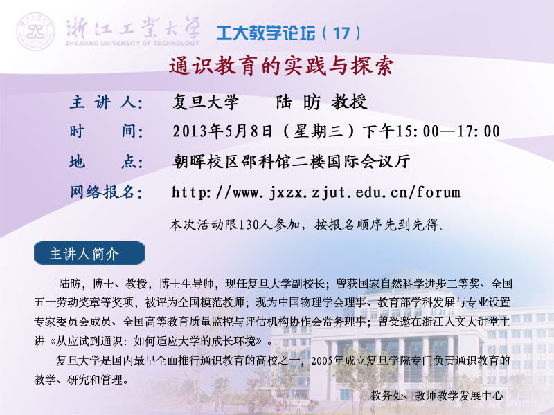 5月8日第十七期工大教学论坛:通识教育的实践与探索