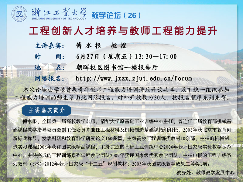 6月27日第26期教学论坛:工程创新人才培养与教师工程能力提升