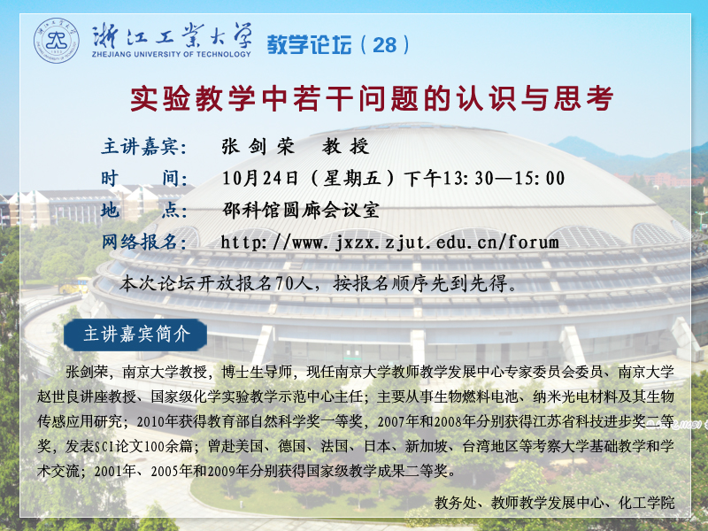 10月24日第28期教学论坛:实验教学中若干问题的认识与思考