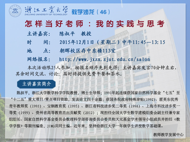 12月1日第46期教学沙龙:怎样当好老师:我的实践与思考