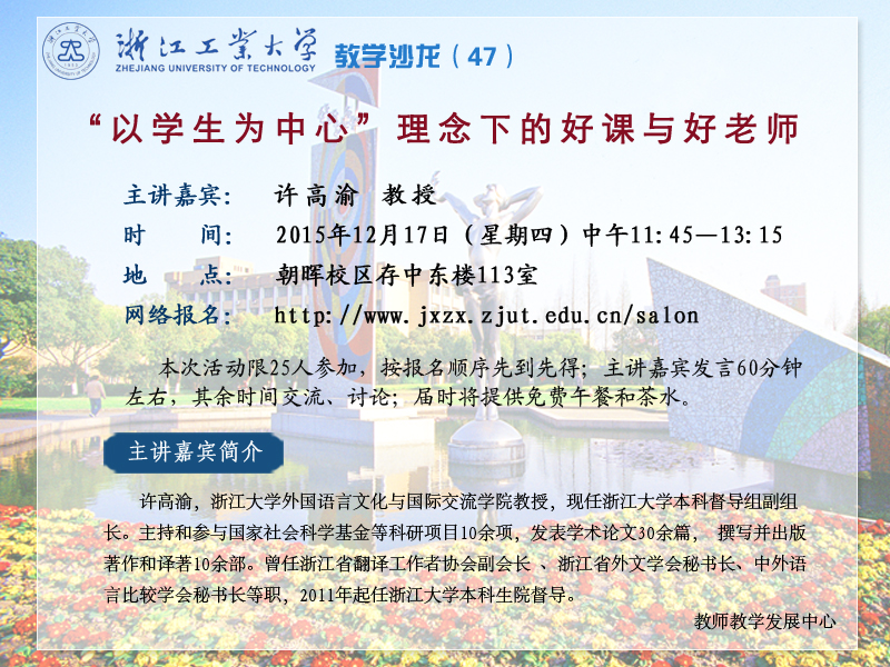 12月17日第47期教学沙龙:“以学生为中心”理念下的好课与好老师
