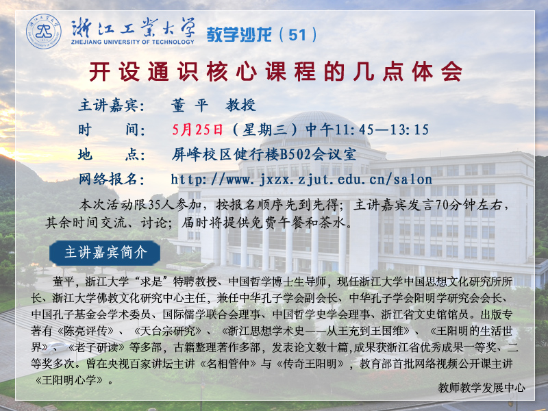 5月25日第51期教学沙龙:开设通识核心课程的几点体会