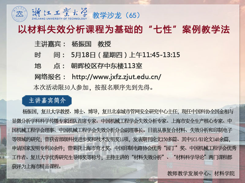 5月18日第65期教学沙龙:以材料失效分析课程为基础的“七性”案例教学法