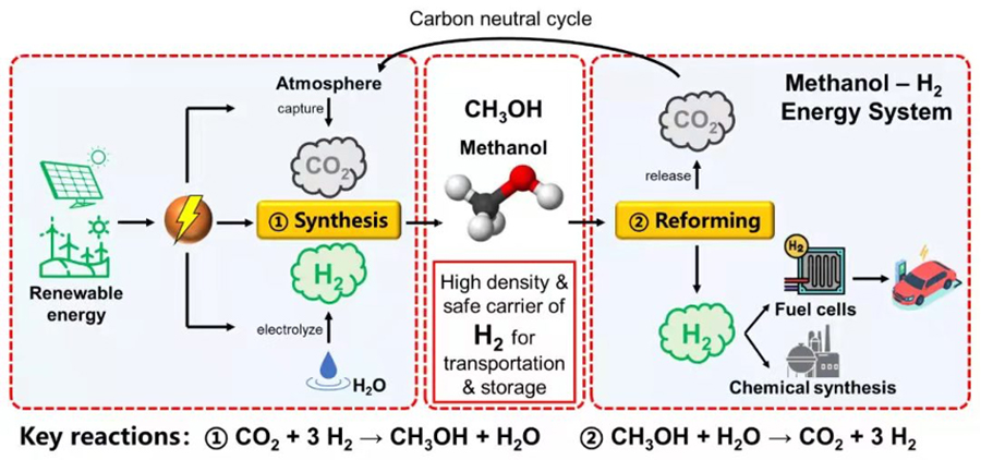醇-氢能源体系示意图