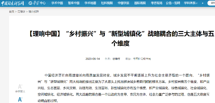 【理响中国】“乡村振兴”与“新型城镇化”战略耦合的三大主体与五个维度