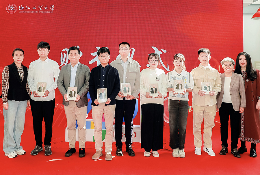 仪式上,高翔、周伟斌共同为《沈寅初院士学术年谱》新书揭幕;钱旭红、郑裕国院士向合作企业代表赠书;赵玉清、钱国莲、谢觅之向师生代表赠书。