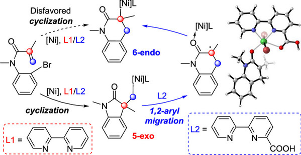 63. Yang, M.; Liu, N.; Zhang, Z.; She, Y.-B.; Yang, Y.-F.* Ni-Catalyzed Ligand-Controlled Selective 5-Exo and 6-Endo Cyclization/Cross-Couplings Involving an Unusual 1,2-Aryl Migration. ACS Catal. 2022, 12, 4131−4140. (IF: 13.7, JCR 1区, TOP期刊)