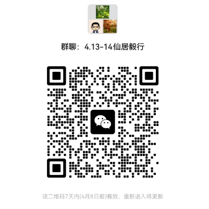 各位老师,学院工会毅行队4月13-14日组织毅行活动(风雨无阻,部分费用自理)。具体行程如下:4.13上午出发前往仙居,下午游览神仙居。4.14上午苍岭古道精华段(行程大致15公里),午饭后回杭。因后续涉及酒店预定事宜,报名截止4月3日中午12点。请参加老师扫码加群。