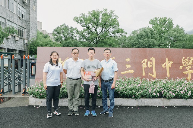 来自浙江省三门中学的郑硕,是获得今年首封录取通知书的“幸运儿”。他的高考总分是649分,选考科目是化学、政治和历史。他凭借优异的高考成绩和学校“三位一体”面试中的突出表现,在报考考生中综合素质测试成绩名列第一,最终被我校健行学院实验班录取。接过浙工大2019年第一封本科新生录取通知书,郑硕脸上满是喜悦和激动的神情。他表示,非常荣幸成为第一个收到浙工大录取通知书的新生,在自己的高中母校领取录取通知书,对他来说是一份责任,也是一种鼓励。健行学院的师生代表为郑硕送上工大文创、毛笔套装、水晶石等特色礼物,还向他介绍了博雅学堂、学校荣誉生制度等我校特色培养举措。