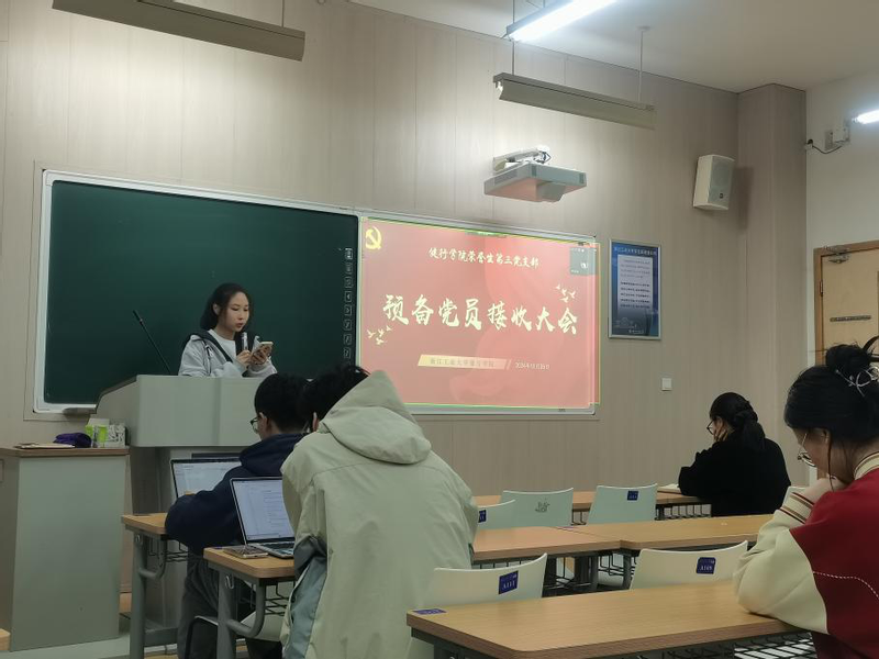 首先开展的是主题党日学习分享会。在开始分享之前,全体同志集中学习观看了“深入学习贯彻习近平总书记关于全面深化改革的一系列思想、新观点、信论断和党的二十届三中全会精神”视频课程。此后,张依芸同志结合法治建设围绕“沿着法治轨道推进改革,铸就法治中国新辉煌”的主题进行了学习感悟分享。最后进行的是预备党员接收大会,本次支部的发展对象为杨翌悦、杜雯萱、李杭禧和黄侯迪四位同志,根据投票结果,四位发展对象均被同意接收为中共预备党员,并拟报上级党组织批准。